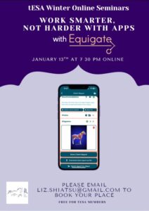 Equigate are giving tESA a demo of their app, which helps you manage your clients and your diary, book sessions / automate appointments, send invoices, communicate with clients and write and send reports including marked up pictures, videos and documents. It is free for students.